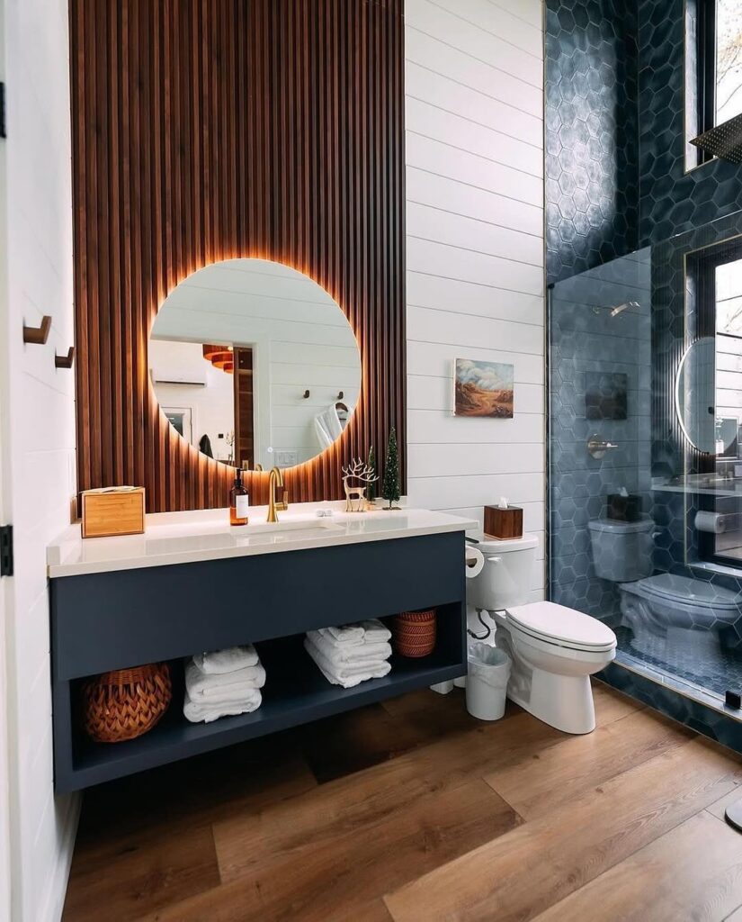 Inside, the cabin continues to impress with its cozy yet thoughtfully designed interior. Large windows flood the living space with natural light, while soft furnishings and modern décor create a warm welcome after a day spent outdoors. The full kitchen, comfortable bedroom, and luxurious bathroom with multiple shower heads make it easy to relax in style without sacrificing any modern conveniences.