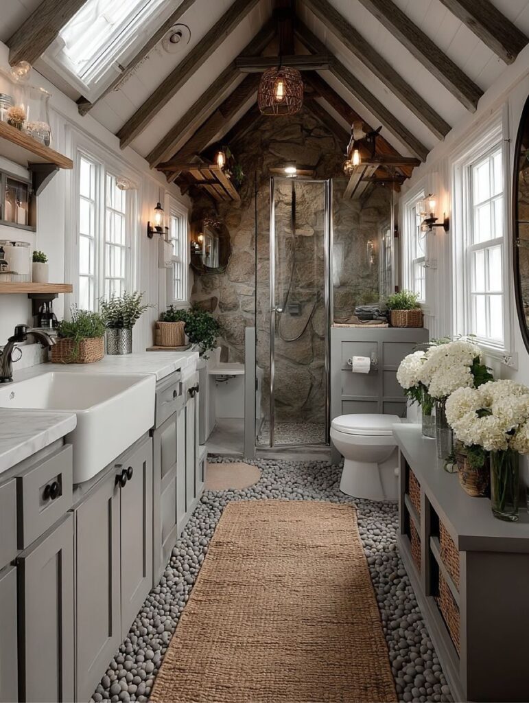 The architectural details of the home speak to a thoughtful design that maximizes both beauty and function. From the arched windows and stone accents to the dormer loft and mini balcony, every element adds character and a touch of luxury. The symmetry and craftsmanship make it clear that this is more than just a small house—it’s a work of art designed for comfortable living in harmony with nature.