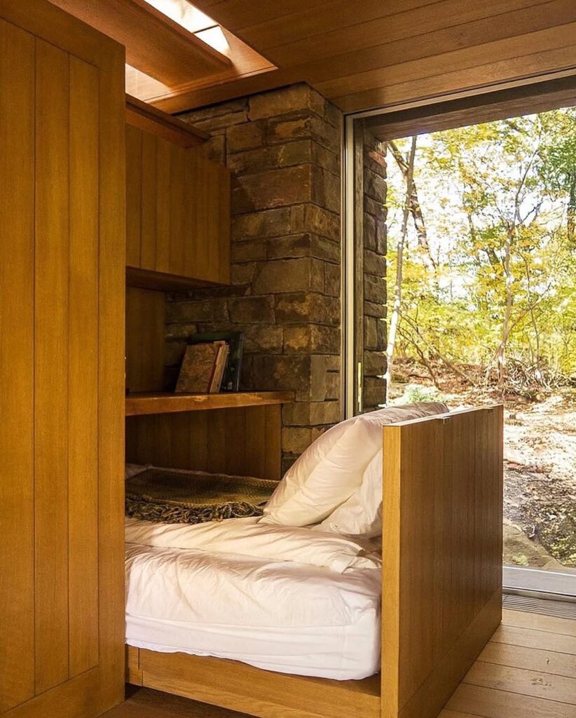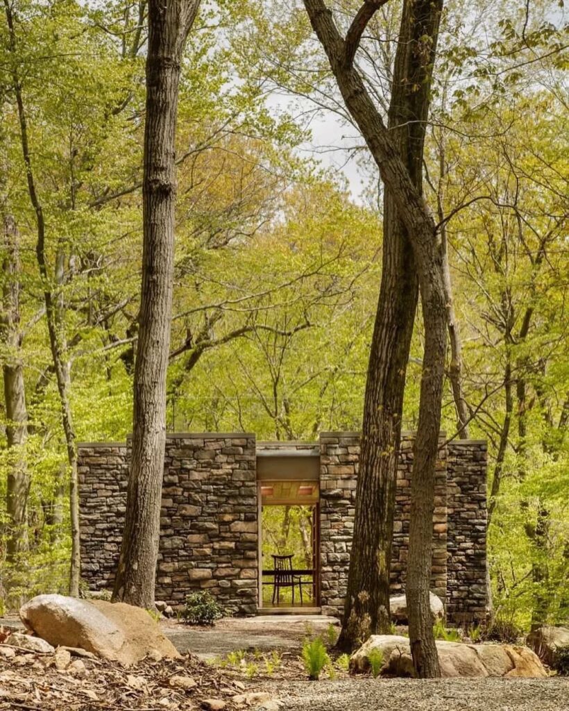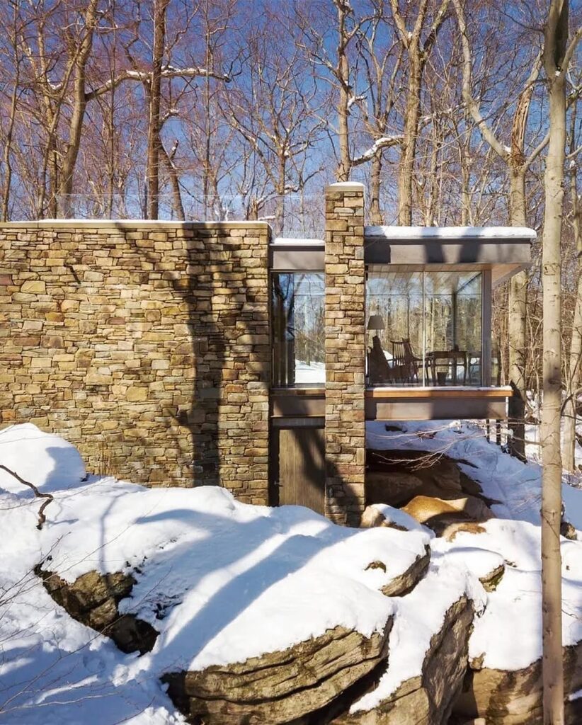 Tucked deep within the lush forests of Greenwich, Connecticut, this 650-square-foot modern cabin is a masterclass in blending architecture with nature. Designed with precision and intention, it appears to emerge organically from the rocky hillside, as if the forest itself had shaped it. The cabin’s stone façade pays homage to the rugged terrain surrounding it, while expansive glass walls open up to panoramic woodland views, immersing its occupants in the peaceful rhythm of nature.
