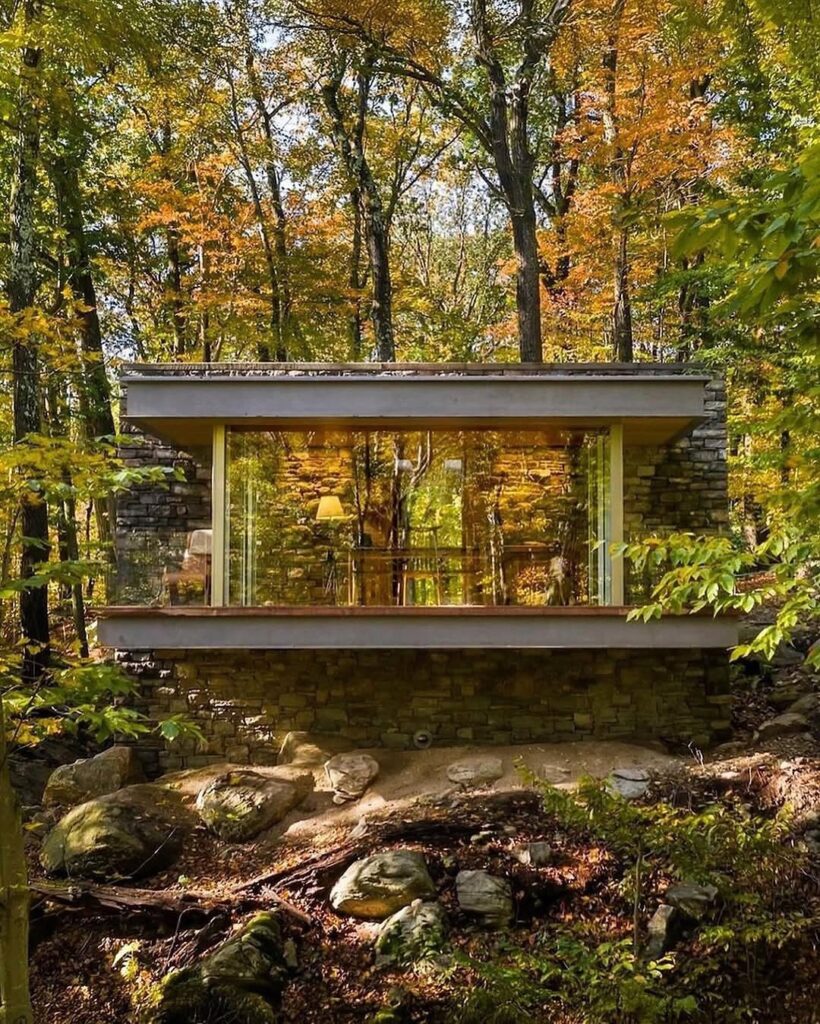 A Hidden Gem in the Woods: The Stone-and-Glass Cabin That Redefines Tranquility