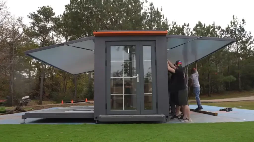 The model he featured, the “DOINUO Mobile Expandable Prefab House,” includes a restroom and an outdoor storage shed. Measuring 19 feet long, 20 feet wide, and 8 feet high, the structure offers an impressive amount of space for its size.