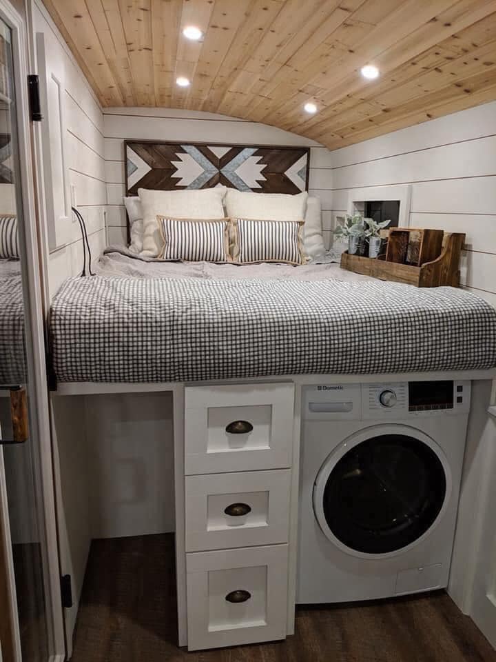 Their thoughtfully designed home on wheels includes all the essentials for comfortable living on the road—a toilet, hot water, air conditioning, heating, and even a washer and dryer. With everything they could possibly need, Robbie and Priscilla are fully equipped to take on the challenges of a nomadic lifestyle with confidence.