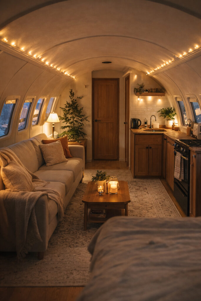 This airplane tiny home isn’t just a clever renovation — it’s a reminder that homes don’t have to follow traditional rules. With creativity, vision, and thoughtful design, something once meant for flight can become a peaceful place to live. Surrounded by snow, glowing with warm light, and filled with cozy details, this aircraft cabin retreat feels less like a house and more like a dream brought to life. And perhaps that’s the real magic of tiny homes: they show us that home isn’t about size — it’s about imagination, warmth, and the stories built inside the walls.