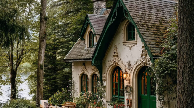 Tucked quietly among tall trees and lush greenery, this enchanting little cottage looks like something lifted straight from a storybook. With its steep rooflines, charming arched windows, and deep green doors, the home blends beautifully with the surrounding forest, creating a peaceful retreat far from the noise of everyday life. But the magic of this cottage isn’t only on the outside — step inside and you discover a warm, inviting interior that perfectly matches the charm of its woodland setting.
