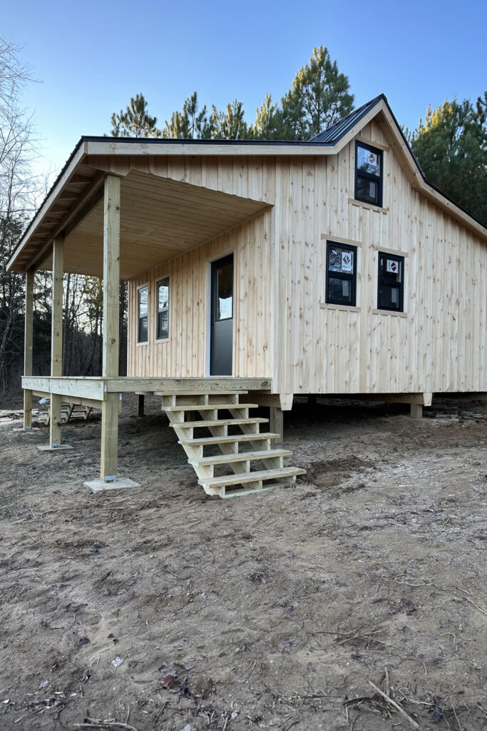 The layout is where this cabin earns its value. Two full levels give you actual flexibility, not the cramped “tiny house” illusion most people fall for. You can turn it into a weekend escape, a rental, a workspace, or a full-time home if you build it right. The large front porch gives you usable outdoor space instead of wasted square footage, while the enclosed back porch adds a layer of practicality—storage, a mudroom, or a quiet sitting area without worrying about weather. The structure itself is solid, with durable wood siding and a metal roof that’s built to last, not something you’ll be fixing every season.