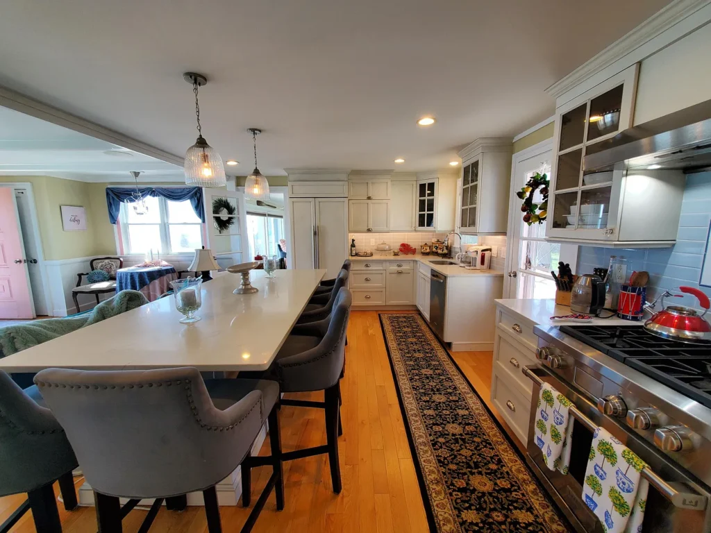 Inside, the home balances comfort with that classic coastal personality. Three bedrooms and two full baths give it practical livability, while the updated kitchen anchors the space with a clean, functional layout that actually works for daily use—not just photos. The primary suite steps it up with an ensuite bath, walk-in closet, integrated washer and dryer, and direct access to the back deck—meaning your morning routine includes stepping straight into salt air and sunrise views.