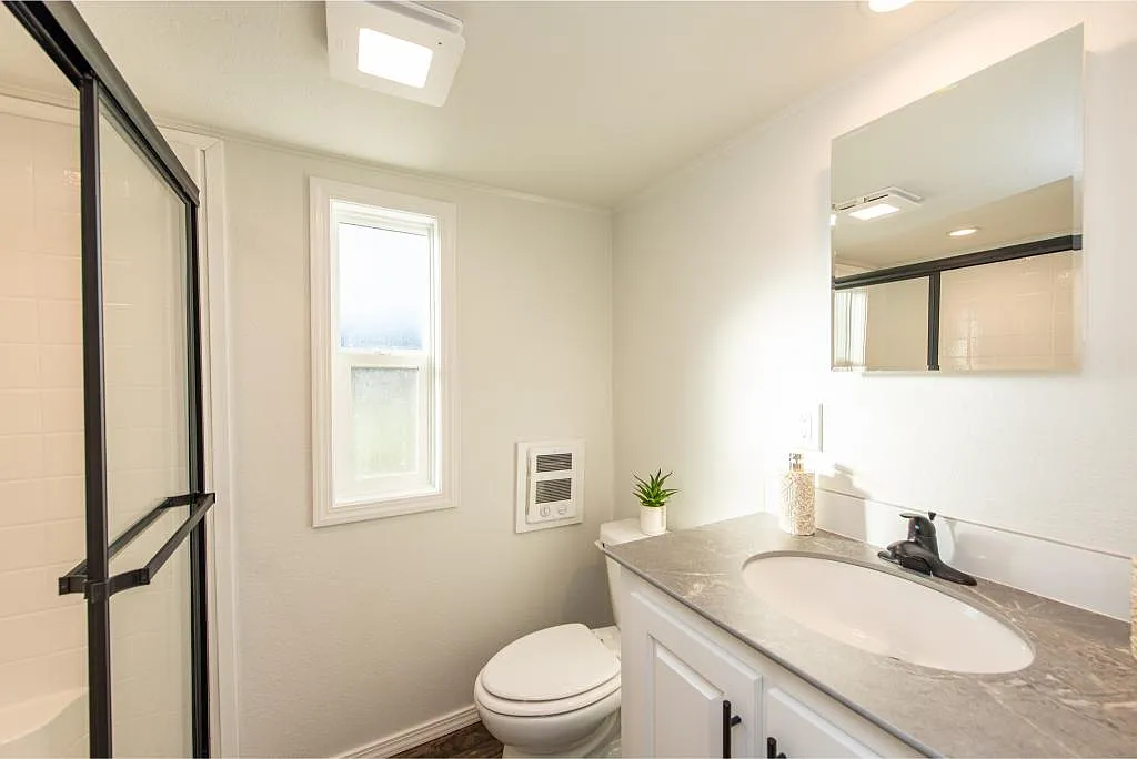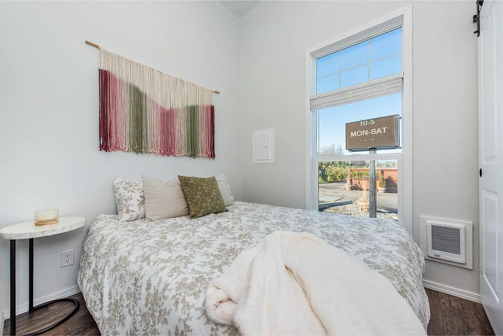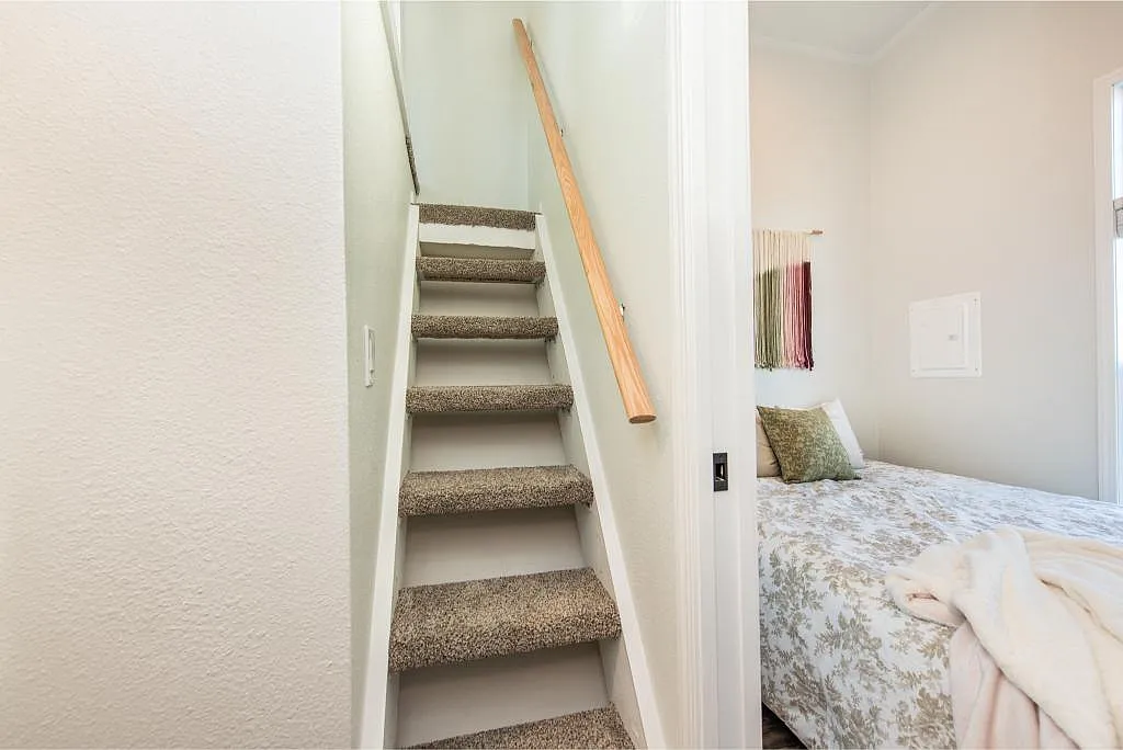 The bedroom offers a quiet, cozy retreat designed for real rest, not just squeezing in a bed. It’s simple, warm, and exactly what you need after a long day. Just steps away, the bathroom delivers everything you expect in a full-sized home, with a clean layout that keeps things practical without sacrificing comfort. And then there’s the loft—an added bonus that gives you flexibility. Whether you use it for storage, guests, or a creative space, it expands what this small home can actually do.